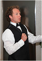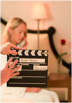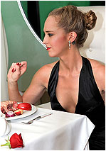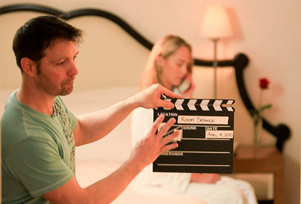 A woman's voice lures him into the suite where he discovers her waiting at the shower door. Only after he confirms the contents of his cart is the true main course revealed.